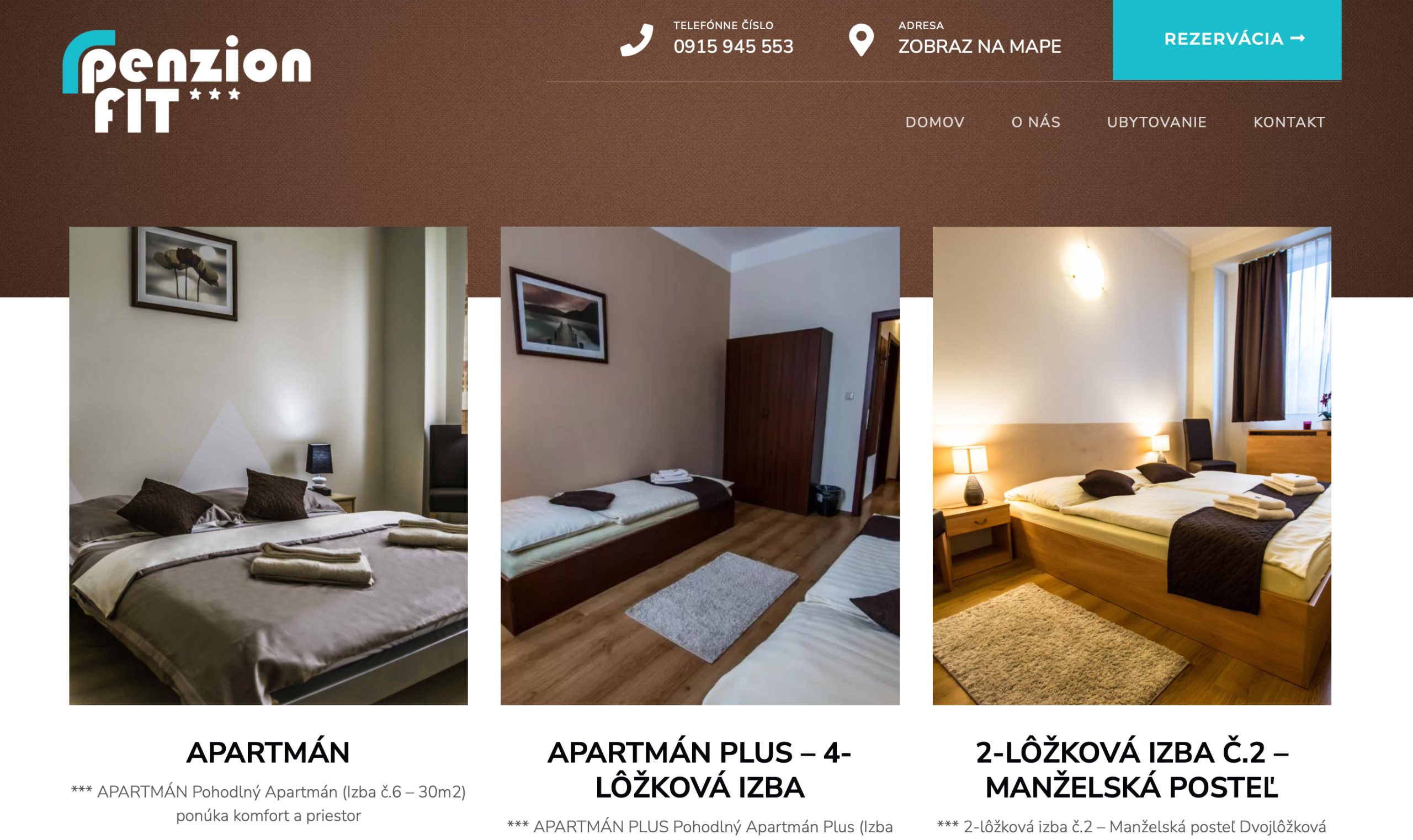 We designed and implemented a full-scale website for Penzión FIT. The result is a clean, well-organized platform with intuitive navigation and an optimized structure, allowing guests to easily find information about rooms, bookings, amenities, and the surrounding area.